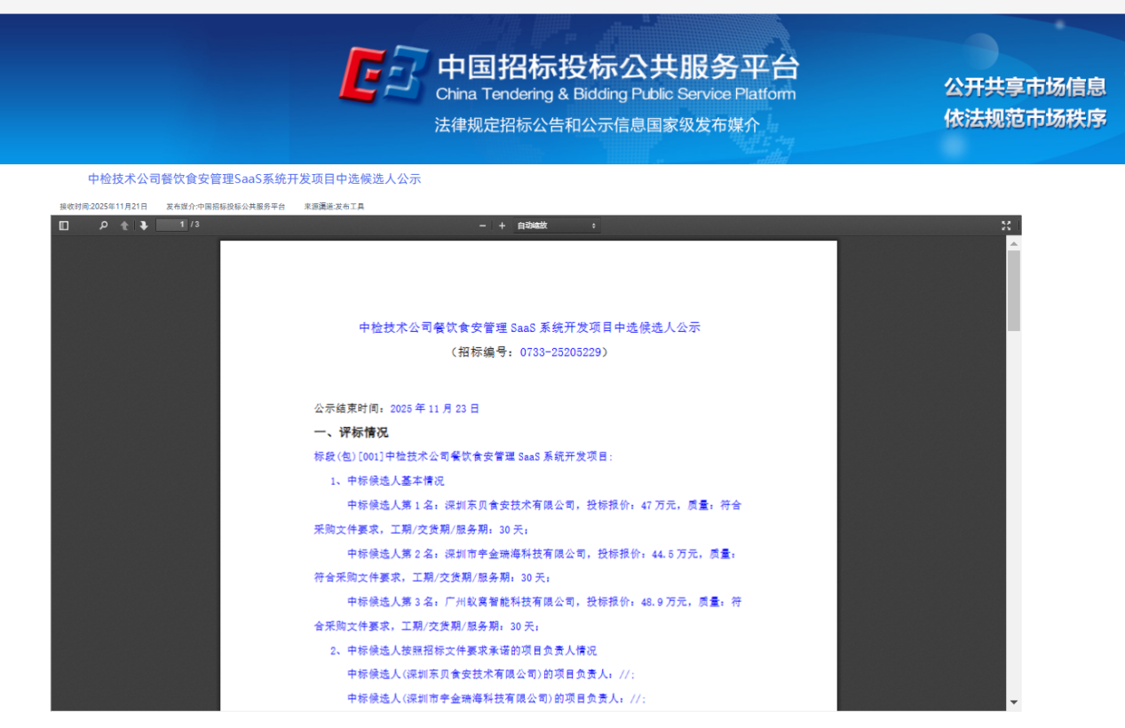 1. 项目名称:中检技术公司餐饮食安管理SAAS系统开发项目