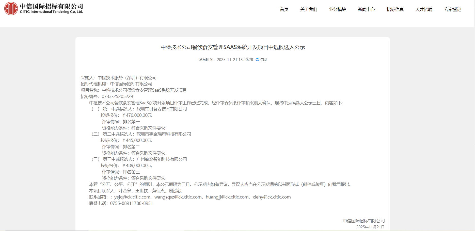 2. 采购人:中检技术服务(深圳)有限公司